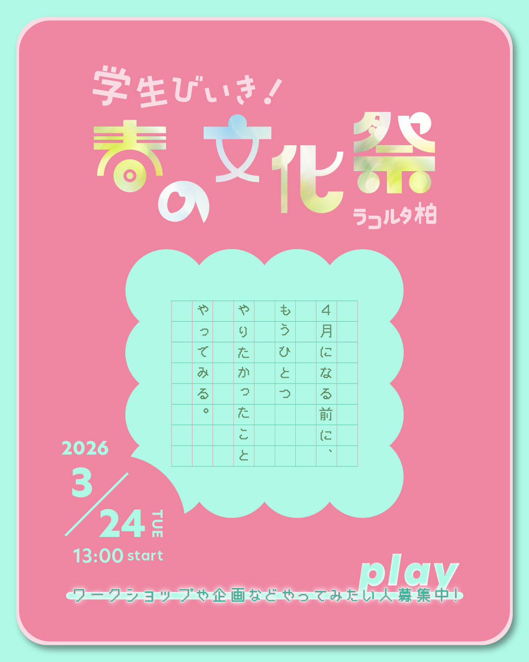 「学生びいきの文化祭~人の渦を作ろう~」 企画参加したい個人や団体の方を募集します!