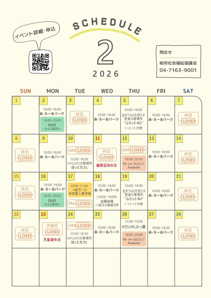 ~2F多世代交流スペース・1あ・えーるテラス~2月イベント情報