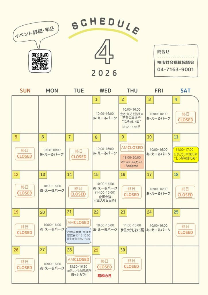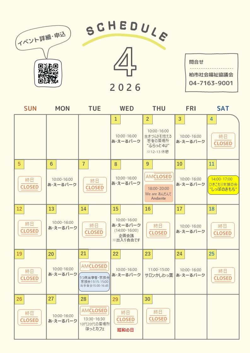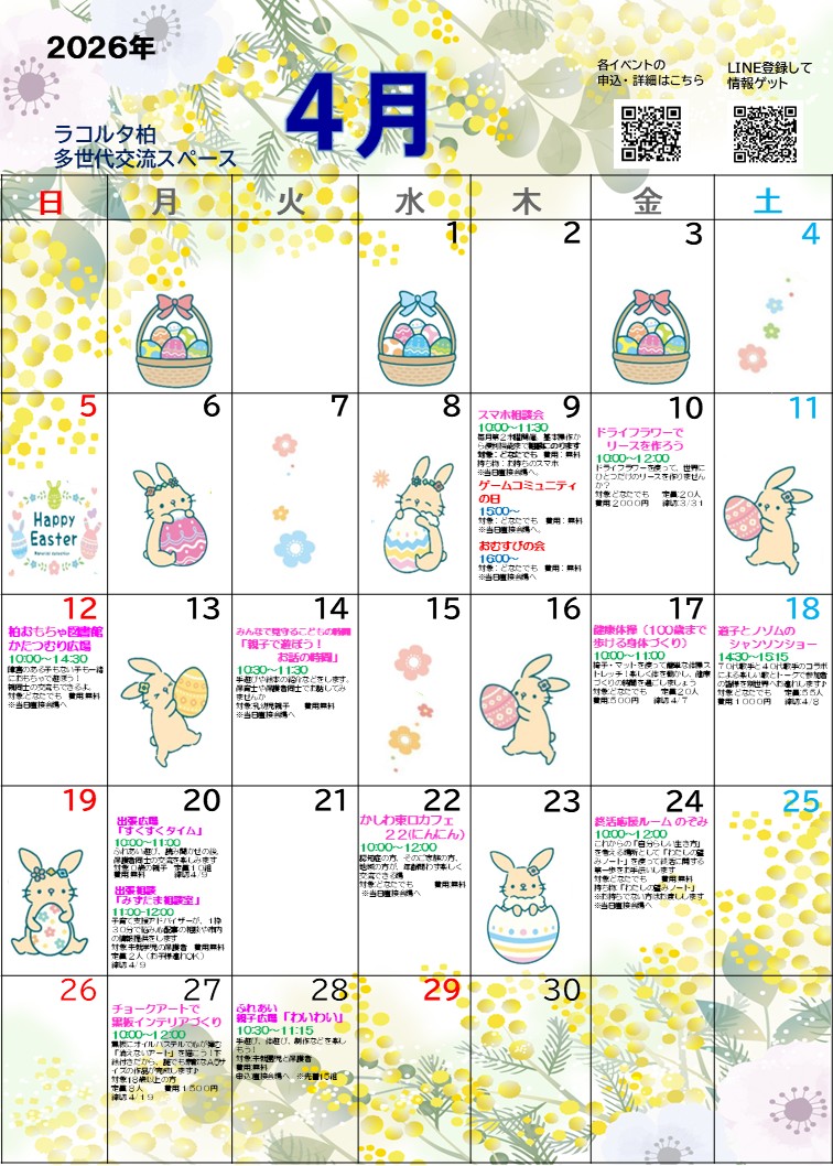 ~2F多世代交流スペース☆1Fあ・えーるテラス~4月イベント情報