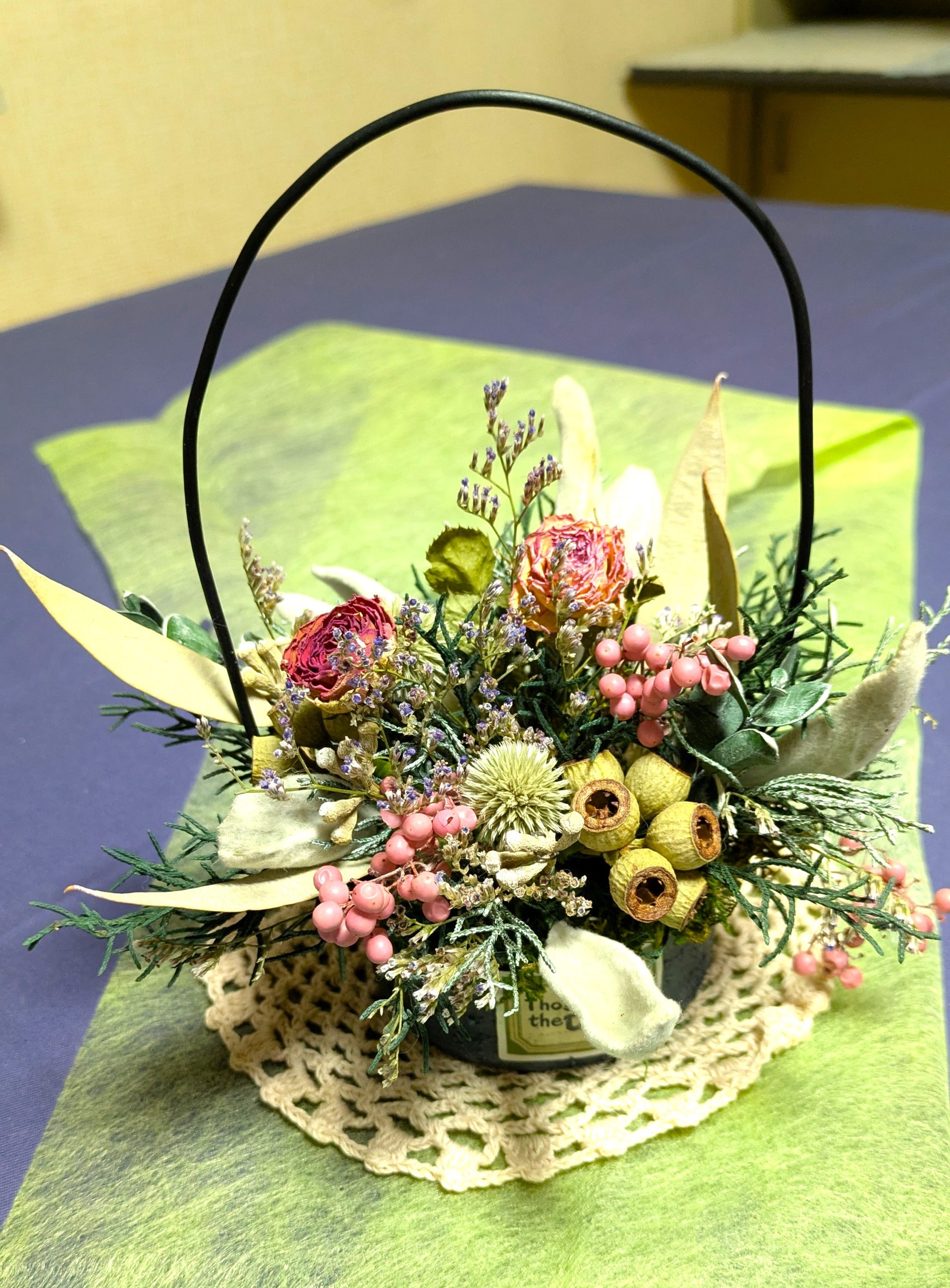 ドライフラワーでフラワーバスケット(花かご作り)