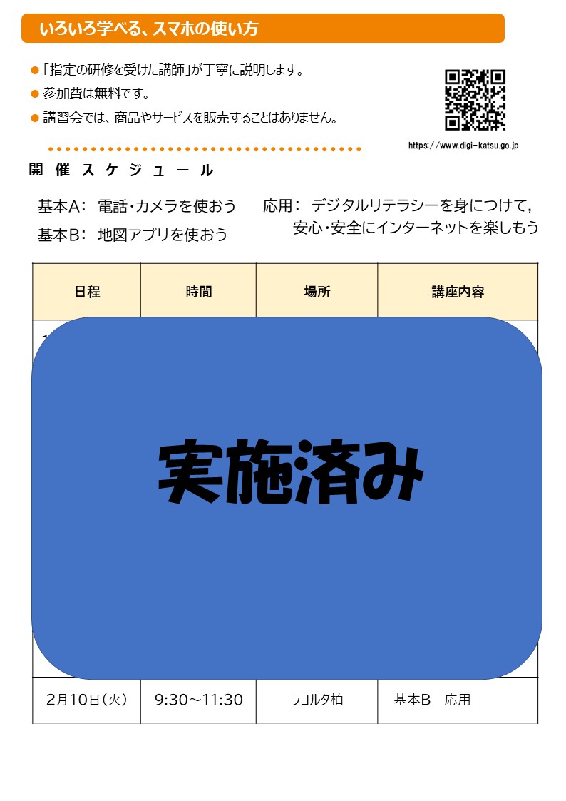 総務省デジタル活用支援推進事業 スマホ講習会(2月実施)